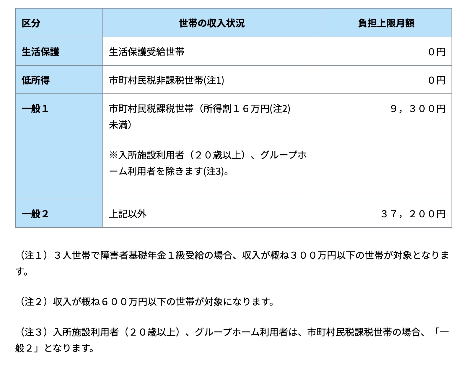 利用者の自己負担は世帯の前年度の収入に応じて設定されます。重要なポイントとして、ここでいう世帯の範囲とはご本人と配偶者のみで、保護者は含まれません。