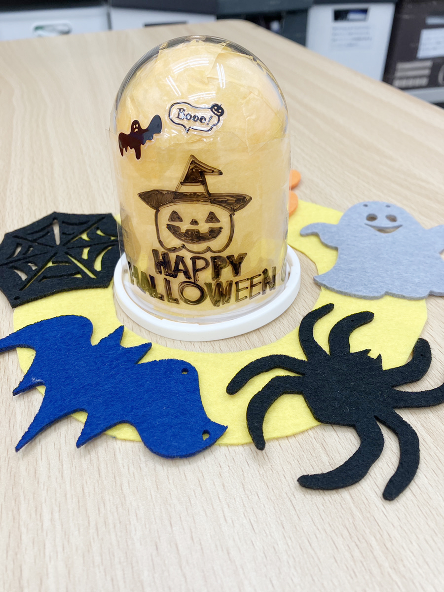 10月はハロウィンランタンを作りました。街中でもかぼちゃの飾りを見かける季節となり皆さんと一緒にハロウィン気分を味わいながら家でも飾って楽しめるランタンを完成させました。